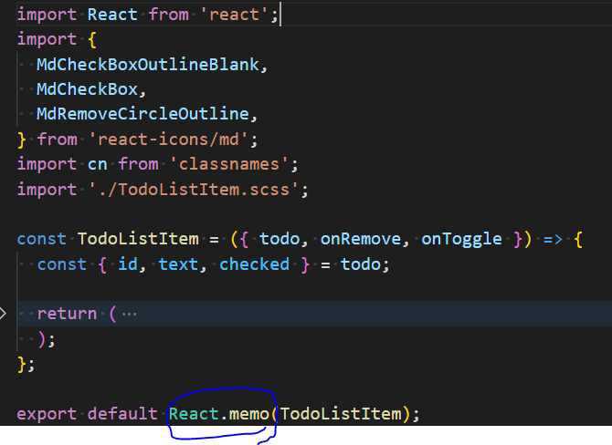 React.memo를 추가해줌으로써, 이제 TodoListItem은 todo, onRemove, onToggle이 바뀌지 않으면 리렌더링하지 않게된다.