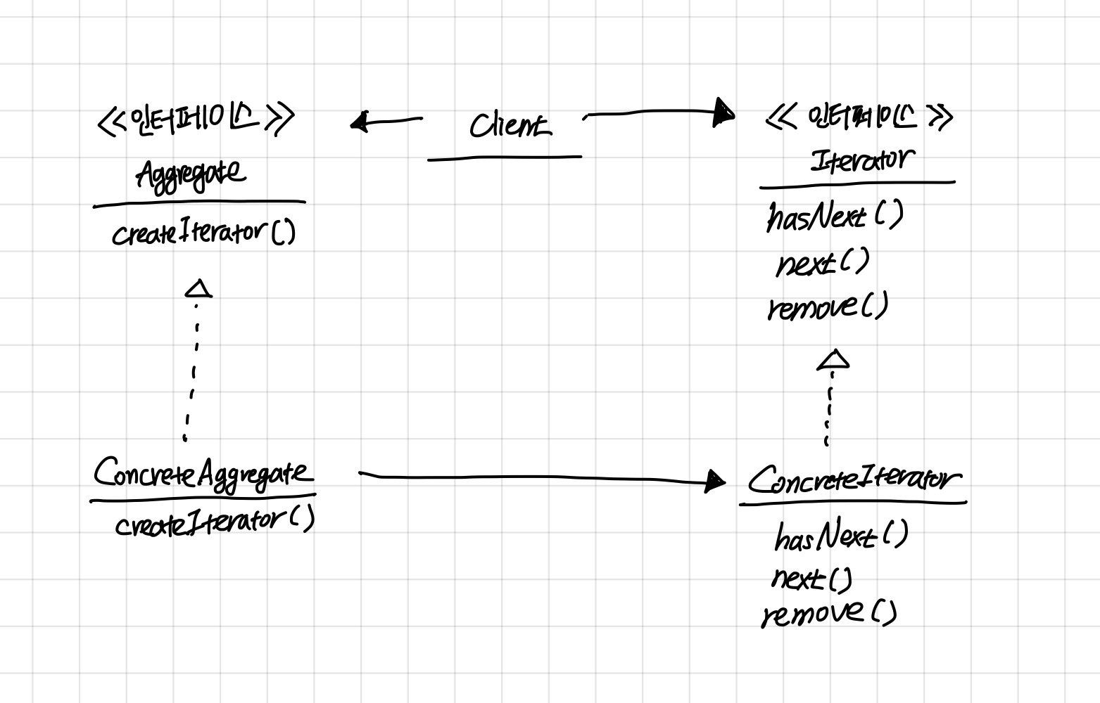 반복자 패턴은 컬렉션의 구현 방법을 노출하지 않으면서 집합체 내의 모든 항목에 접근하는 방법을 제공한다.