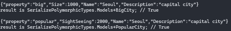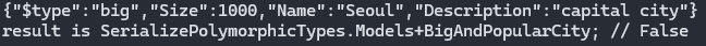 result is SerializePolymorphicTypes.Models+BigCity; // True