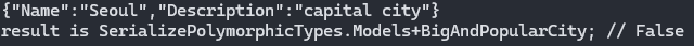 result is SerializePolymorphicTypes.Models+BaseCity; // True