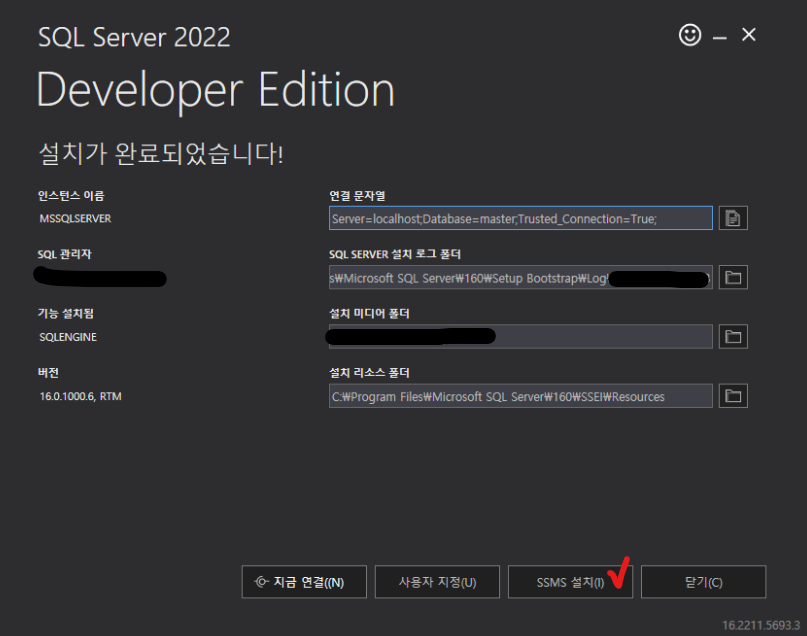 설치 후 다음과 같은 화면에서 SSMS를 설치합니다.