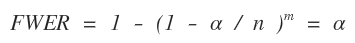 FWER( Family-Wise 1 Error Rate ) : 한 연구에서 적어도 한 개의 잘못된 결론이 나올 수 있는 확률