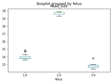 df.boxplot(column = 'head_size', by='fetus' , grid = False)