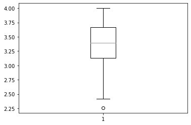 plt.boxplot(df['gpa'])