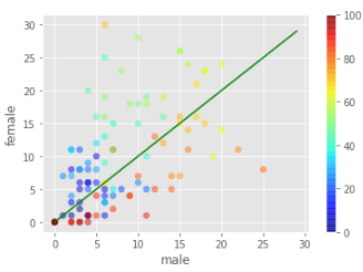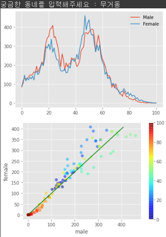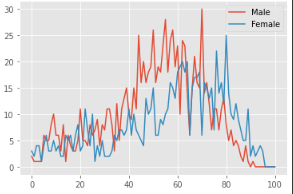 위의 방법과 마찬가지로 데이터를 가져오겠습니다. 이번에는 남/여 구분이 된 데이터를 가져와 살펴보겠습니다.