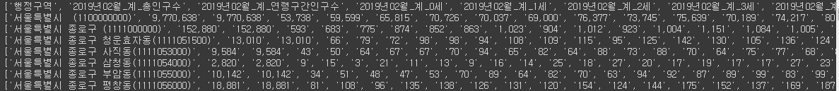if '신도림' in row[0]: # 행정구역을 나타내는 row[0]에 '신도림'이라는 글자가 있으면