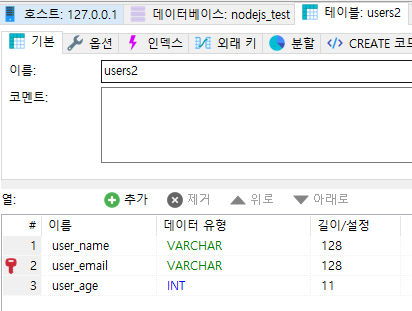 // 이 때, mariaDB에 생성한 TABLE의 column명이 같아야한다.