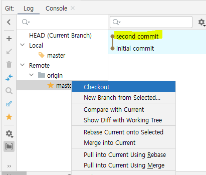 Remote/origin/master로 checkout하면 Local/master와 같은 파일임을 확인할 수 있다.