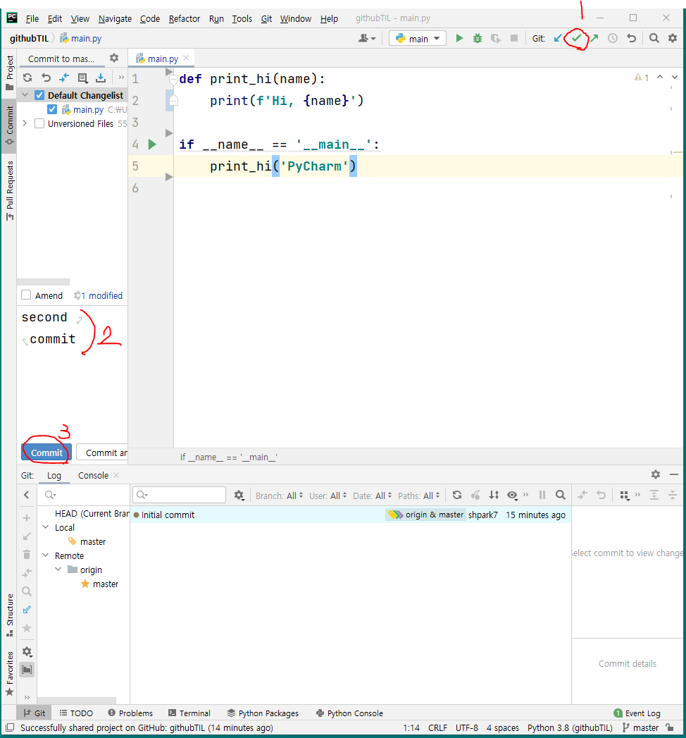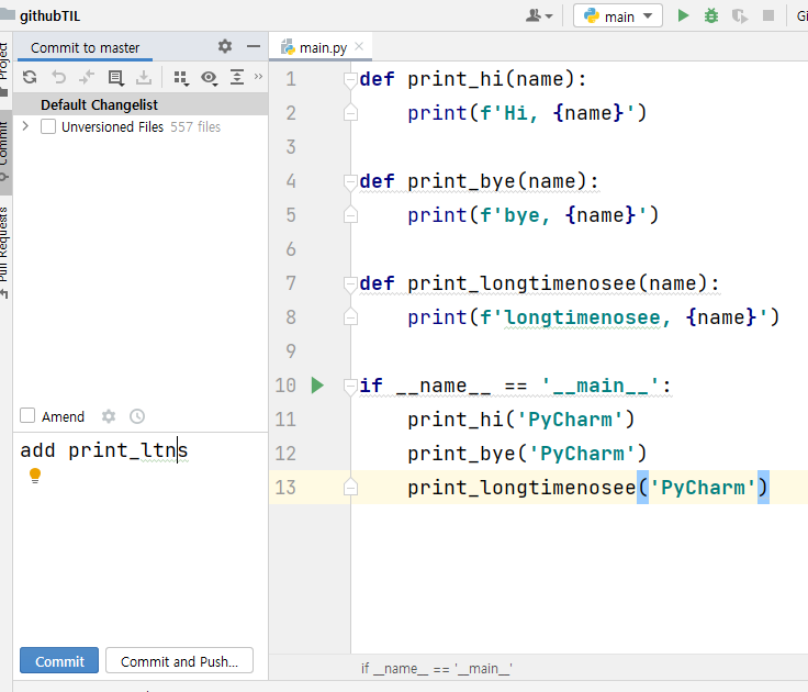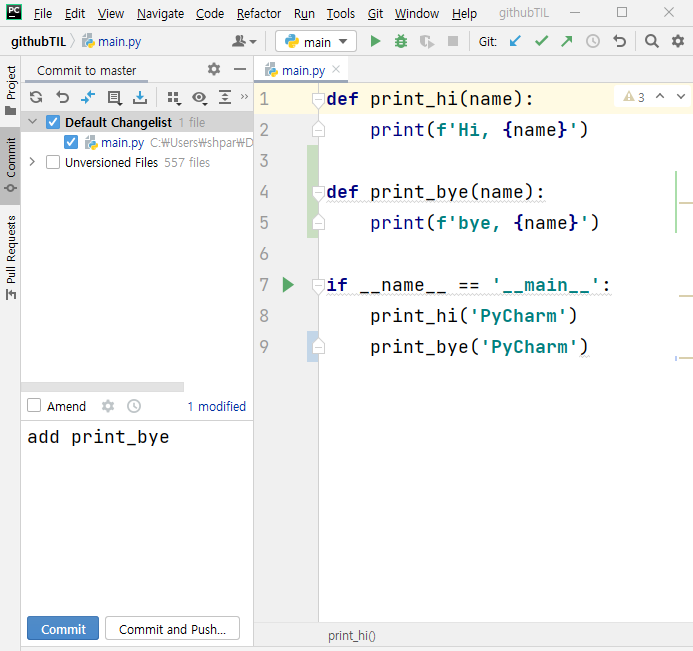 main.py에서도 일부를 수정한 뒤 commit을 했다.