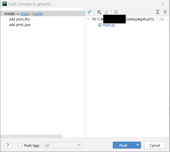 이후에 push 버튼을 클릭하면 다음과 같이 보인다.