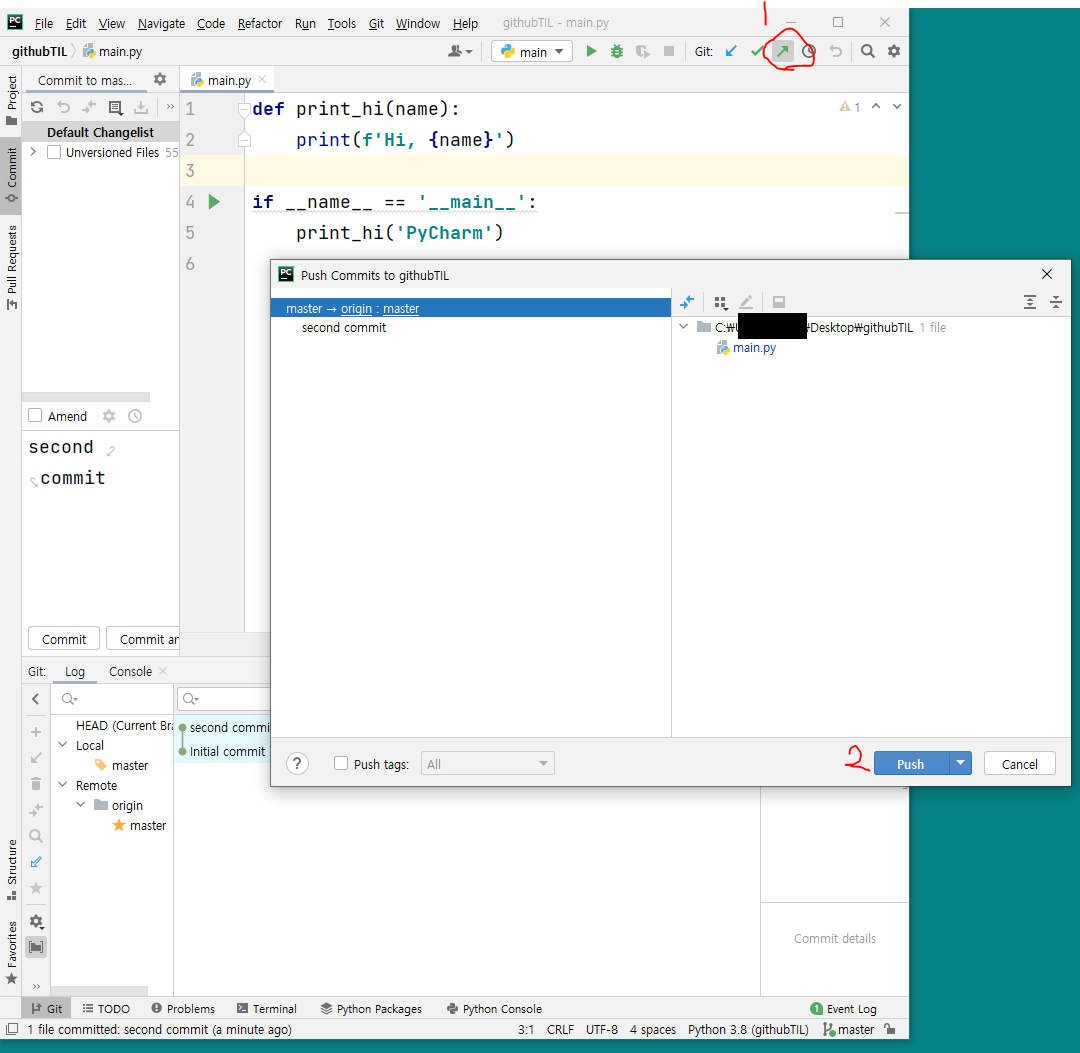 3 ) push를 클릭하면 내가 원하는 commit만 Remote/origin/master에 올릴 수 있다.