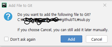 파일을 추가하면 다음과 같은 문구가 뜬다.