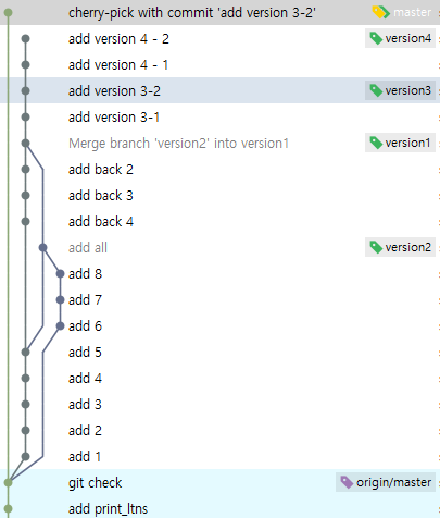 수없이 commit했던 message들 중 하나만 cherry-pick을 해서 선택해온다.
