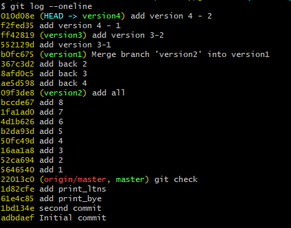 우선 모들 log를 확인하기 위해 가장 최근에 commit된 branch에서 git log를 확인한다.